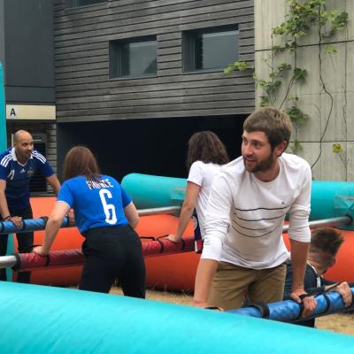 A l’occasion de ce match contre nos voisins belges, Axecibles a décidé de faire de ses collaborateurs des joueurs pro ; babyfoot, tir aux buts et babyfoot humain ! Tant d’activités qui nous ont permis de nous rassembler !